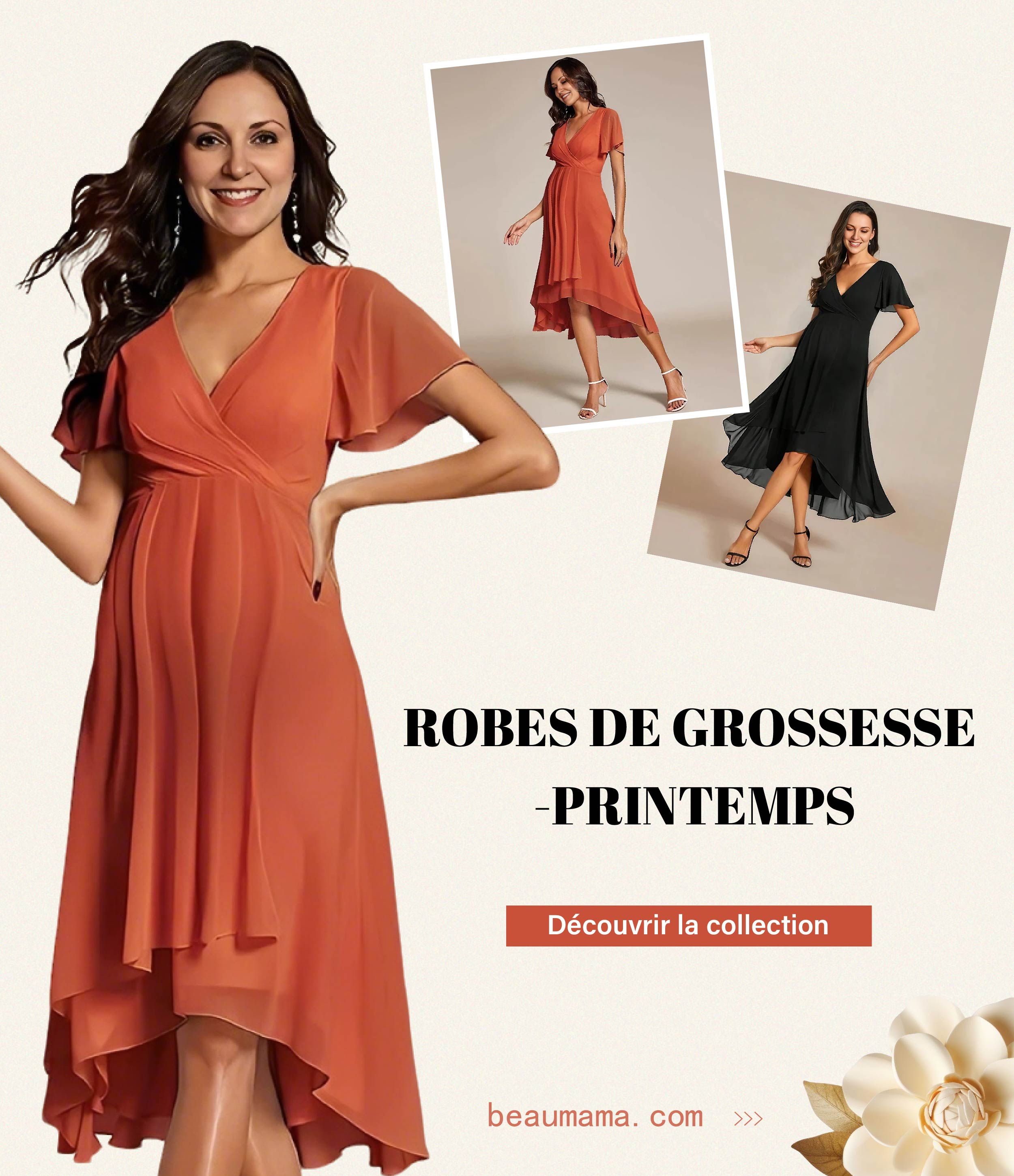 Beaumama robe courte grossesse élégant casual vacances imprimé fleurie volants fluide femme enceinte