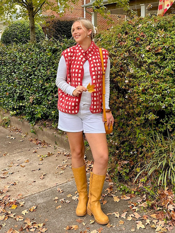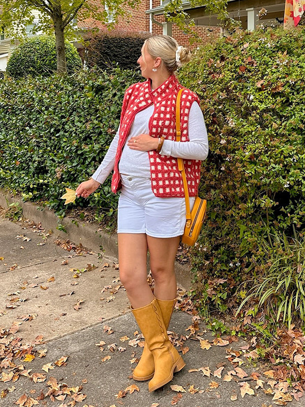Beaumama débardeurs grossesse casual carreaux poilu zippé femme enceinte