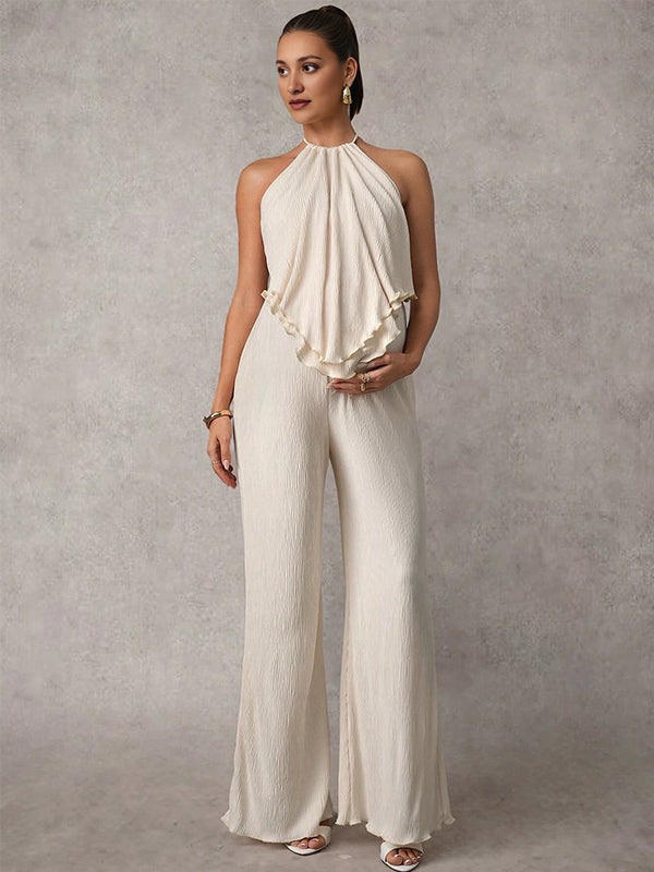 Beaumama débardeurs pantalons grossesse vacances chic 2 pièces plissé dos nu fendu le côté femme enceinte