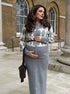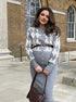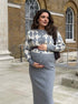 Beaumama gilets en maille jupes 2 pièces grossesse élégant travail motif en losange ceinture couleur bloc femme enceinte