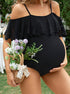 Beaumama maillot de bain une pièce grossesse élégant plage volants découpe spaghettiträger moulante épaule dénudée femme enceinte