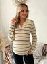 Beaumama pull grossesse casual vintage rayé moulante crochet tricot femme enceinte