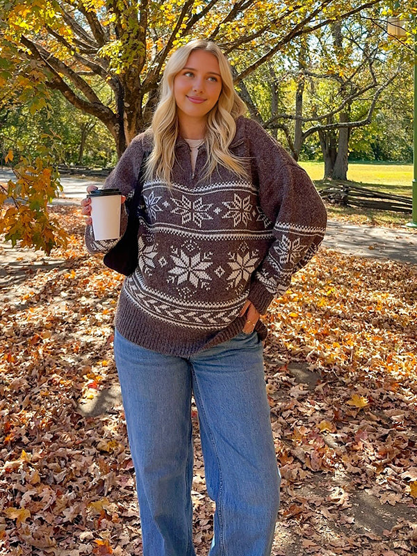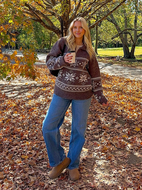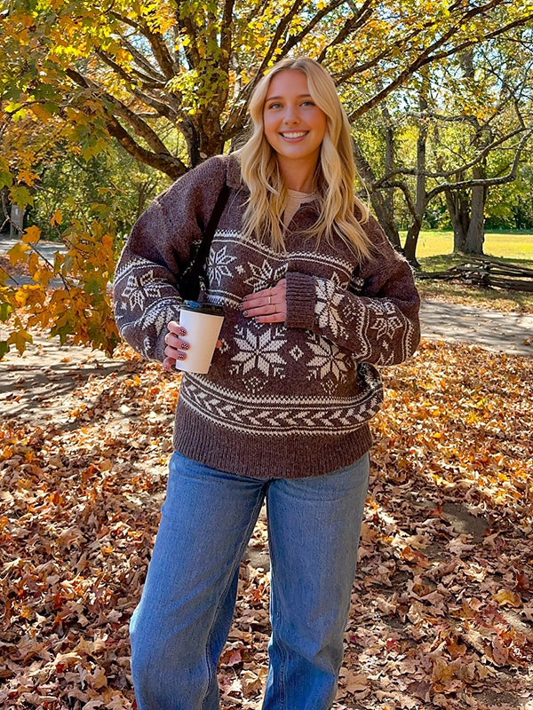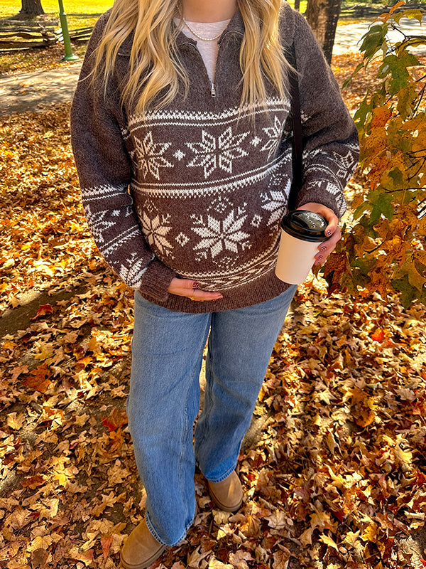 Beaumama pulls grossesse casual imprimé neige zippé crochet tricot femme enceinte