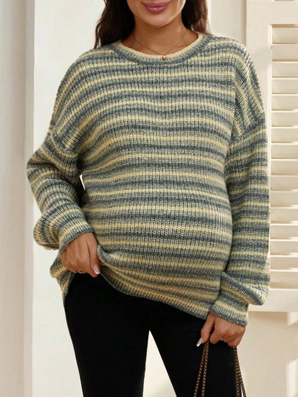 Beaumama pulls grossesse casual rayé couleur bloc crochet tricot femme enceinte
