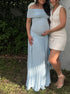 Beaumama robe babyshower garçon longue grossesse élégant cérémonie plissé moulante fluide col bateau femme enceinte