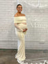 Beaumama robe babyshower longue grossesse élégant chic épissage plissé tulle épaule dénudée sirene femme enceinte