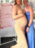 Beaumama robe babyshower longue grossesse nœud papillon moulante col rond élégant femme enceinte