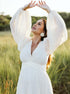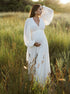 Beaumama robe de mariage longue grossesse élégant dos nu fluide trapèze manches trompette femme enceinte