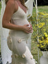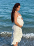 Beaumama robe longue de grossesse babyshower sirène moulante dos croisé ornée de fleurs 3D pour femme enceinte