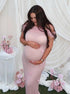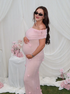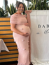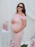Beaumama robe longue grossesse cérémonie chic babyshower épaule dénudée tulle 3D fleurie photo moulante femme enceinte