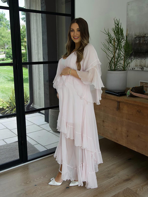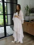 Beaumama robe longue grossesse chic babyshower froufrou volants fluide dos nu femme enceinte