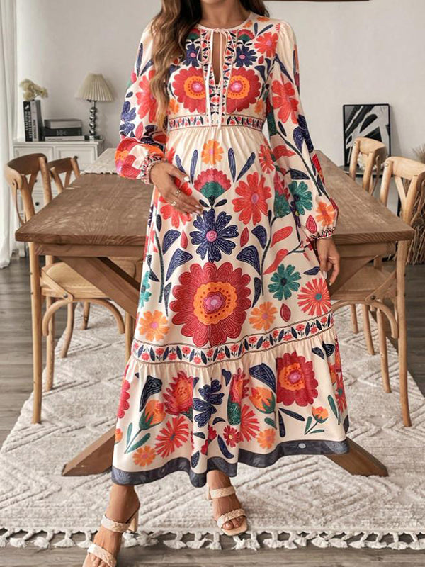 Beaumama robe longue grossesse chic imprimé fleurie nœud papillon fluide femme enceinte