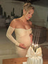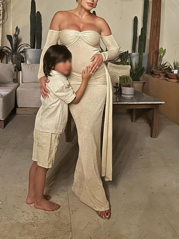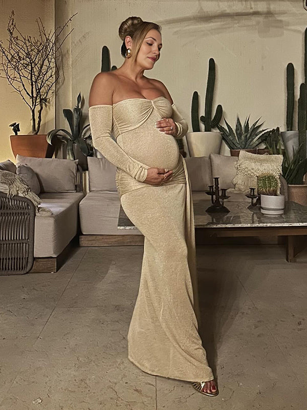 Beaumama robe longue grossesse chic soirée épaule dénudée plissé drapé sur le côté moulante femme enceinte