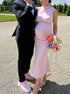 Beaumama robe longue grossesse élégant cérémonie plissé moulante rose base cocktail fête femme enceinte
