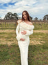 Beaumama robe longue grossesse élégant chic poilu fendu le côté épaule dénudée moulante femme enceinte