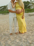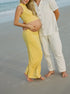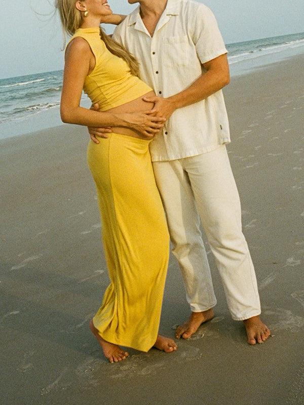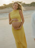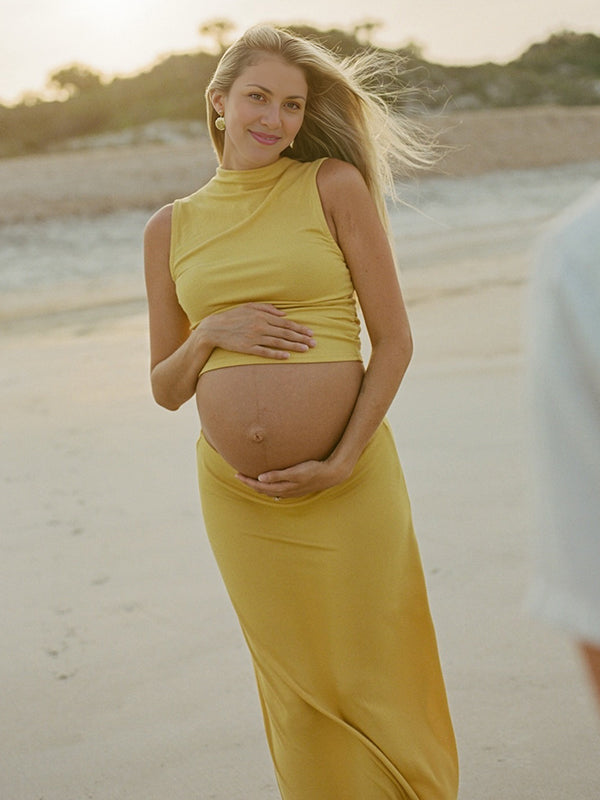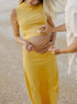 Beaumama robe longue grossesse enceinte shooting costume deux pièces moulante moutarde femme enceinte