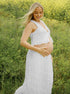 Beaumama robe longue grossesse enceinte shooting costume deux pièces plissé blanche femme enceinte