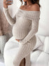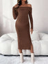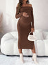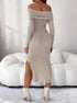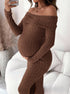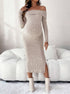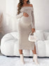 Beaumama robe mi-longue grossesse élégant chic rayé épaule dénudée fendu le côté moulante femme enceinte