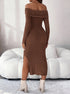 Détails : Rayé, épaule dénudée, fendu le côté, moulante