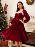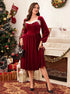 Beaumama robe mi-longue grossesse photo noël élégant velours fluide plume poilu femme enceinte