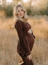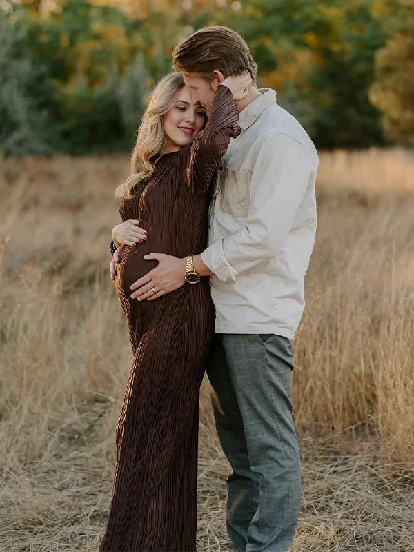 Beaumama robe photo longue grossesse ceinture plissé col rond manches trompette élégant femme enceinte