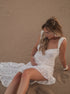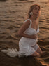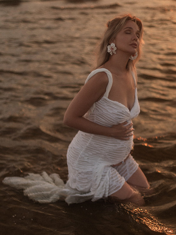 Beaumama robe photo longue grossesse chic déchiré troué volants irrégulier dos nu femme enceinte