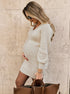 Beaumama robe pull courte grossesse mignon casual crochet tricot nœud papillon dos nu femme enceinte