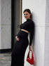 Beaumama robe pulls longue grossesse élégant confortable crochet tricot découpe moulante femme enceinte