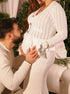 Beaumama robe pulls longue grossesse élégant crochet tricot 2 pièces volants sirene moulante femme enceinte