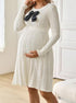 Beaumama robe pulls mi-longue grossesse élégant chic nœud papillon tricot torsadé trapèze femme enceinte