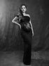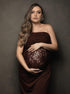 Beaumama robe shooting longue grossesse chic dentelle épissage épaule asymétrique transparent femme enceinte