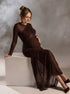 Beaumama robe shooting longue grossesse chic transparent tulle plissé moulante femme enceinte