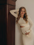Beaumama robe shooting longue grossesse élégant chic 2 pièces volants irrégulier moulante femme enceinte
