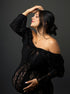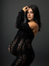 Beaumama robe shooting longue grossesse élégant chic épaule dénudée dentelle volants sirene femme enceinte
