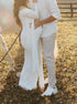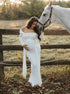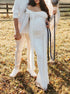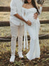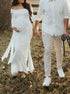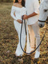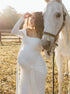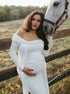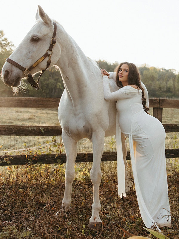 Beaumama robe shooting longue grossesse élégant chic épaule dénudée nœud ruban fente dos femme enceinte