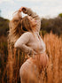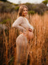 Beaumama robe shooting longue grossesse vacances 2 pièces crochet tricot fendu le côté photo femme enceinte