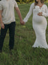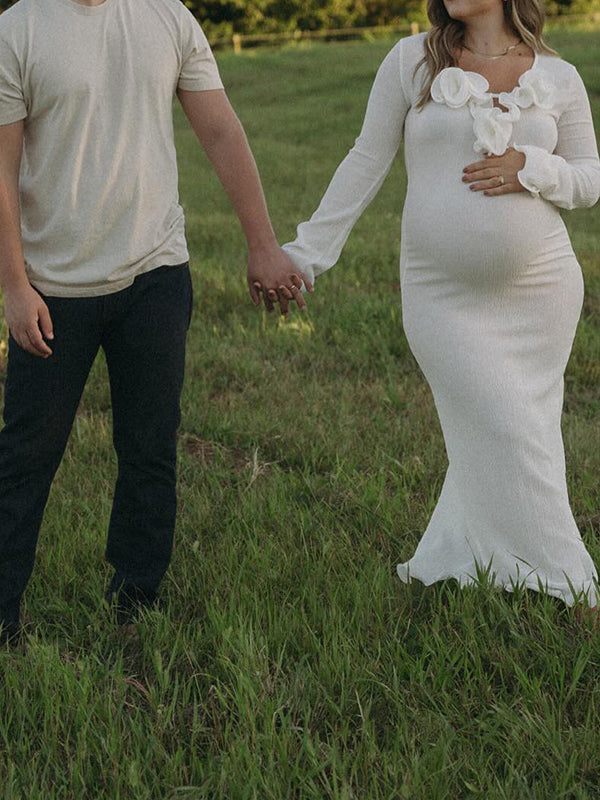 Beaumama robe shooting longue grossesse vacances chic volants fente dans le dos moulante femme enceinte