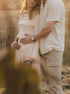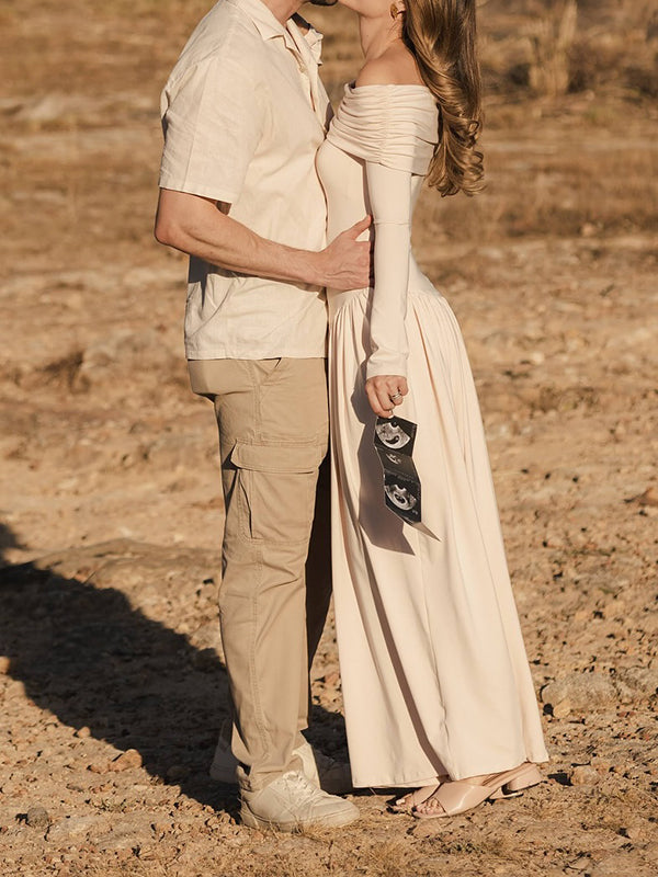 Beaumama robe shooting longue grossesse vacances épaule dénudée plissé trapèze femme enceinte