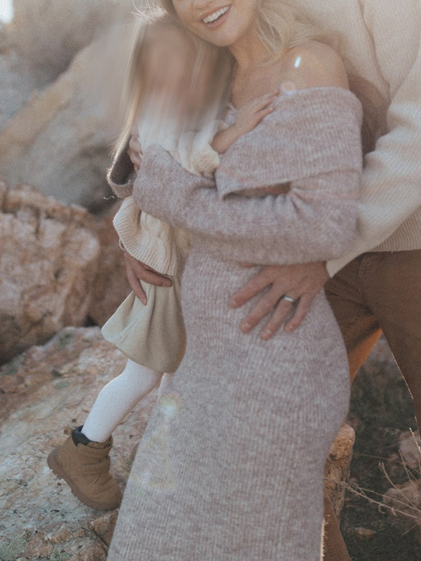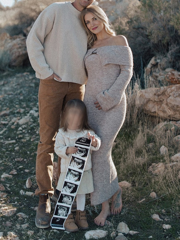 Beaumama robe shooting longue pulls grossesse élégant chic boucle épaule dénudée moulante femme enceinte