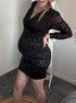 Beaumama robes courte grossesse élégant cocktail brillante paillette tulle transparent moulante femme enceinte