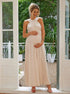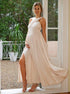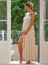 Beaumama robes longue grossesse cérémonie soirée fendu le côté dos nu fluide licou élégant femme enceinte