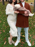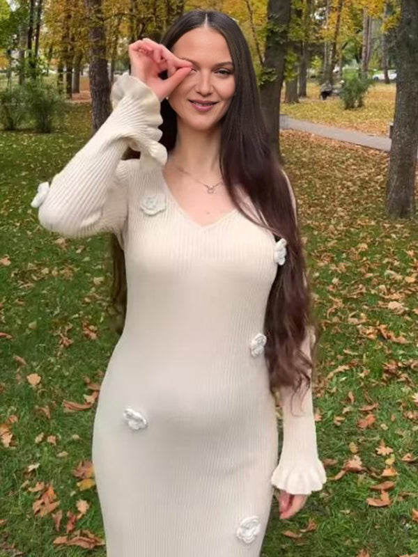 Beaumama robes longue grossesse élégant casual 3D fleurie volants crochet tricot moulante femme enceinte