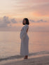 Beaumama robes longue grossesse élégant casual rayé dos nu fluide manches trompette enceinte shooting femme enceinte