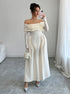 Beaumama robes longue grossesse élégant chic épaule dénudée 3D fleurie trapèze femme enceinte