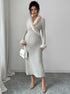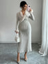 Beaumama robes longue grossesse élégant chic épissage plume poilu rayé femme enceinte