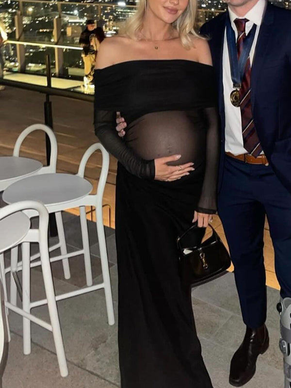 Beaumama robes longue grossesse élégant cocktail épissé tulle transparent moulante col bateau femme enceinte