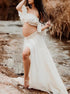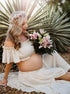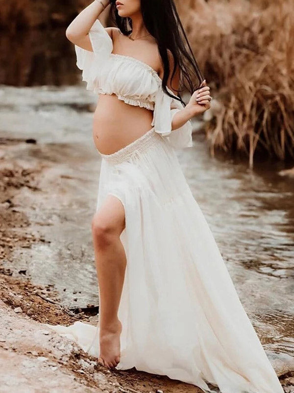 Beaumama robes longue grossesse enceinte shooting costume deux pièces mousseline fendu le côté volants fluide femme enceinte
