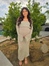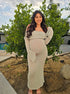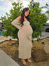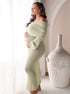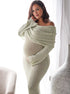 Beaumama robes longue grossesse tricot col bateau manches trompette élégant femme enceinte