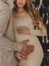 Beaumama robes mi-longue grossesse chic casual moulante fendu le côté femme enceinte
