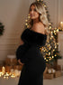 Beaumama robes moulante longue grossesse chic cocktail poilu épissage épaule dénudée femme enceinte